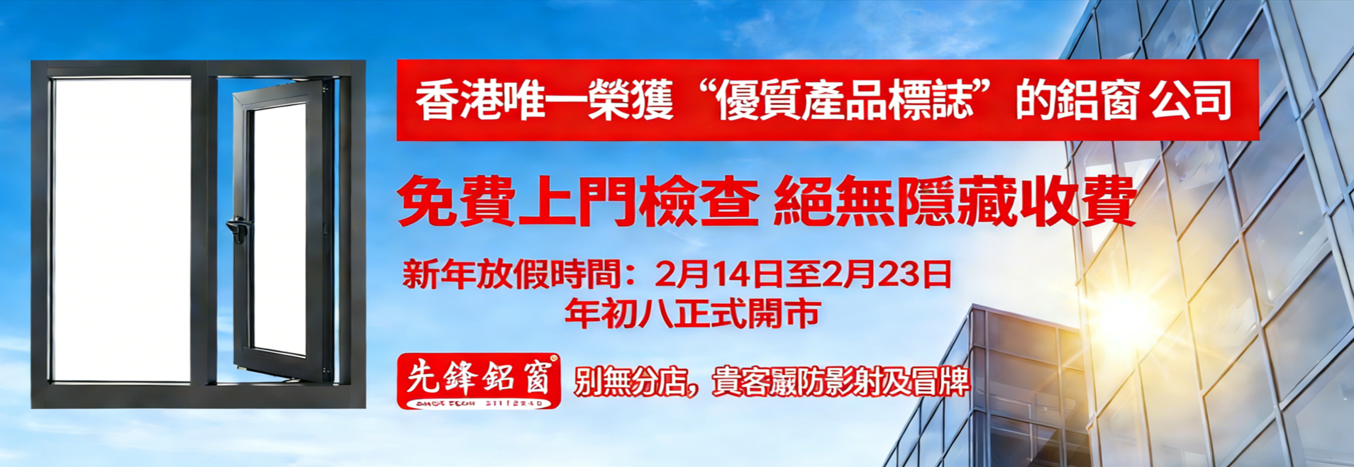 鑑於最近收到客戶投訴有同業假借本公司名義為業主檢查及維修鋁窗,但工程質素參差及售後服務差劣。有見及此,我們重申一次: